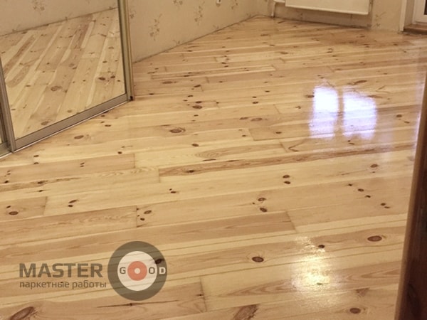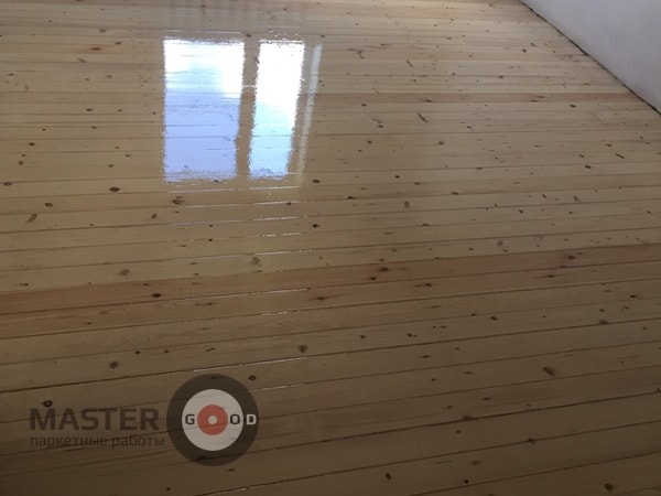 - Межслойное шлифование пола (требуется только при нанесении нескольких слоев лака). Для качественного сцепления финишного слоя лака с первичной лаковой пленкой поверхность пола шлифуют для удаления мелких дефектов и неровностей.