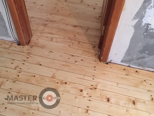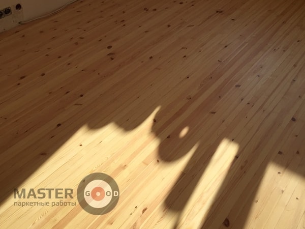 - Повторное шлифование пола для удаления поднявшегося древесного ворса и мелких бугорков - под ключ.